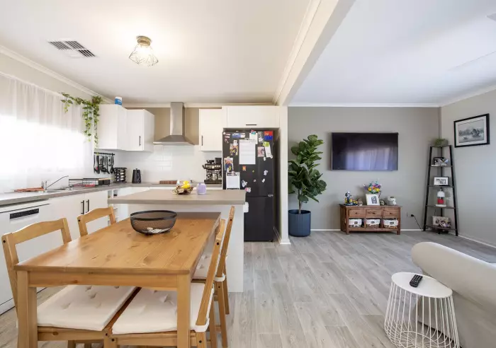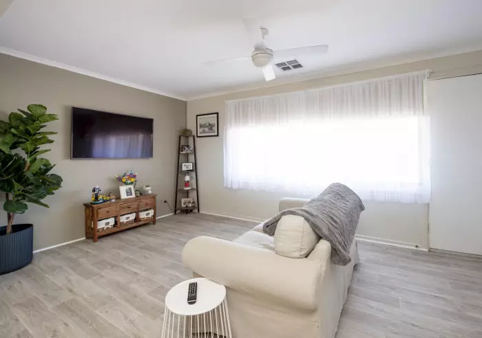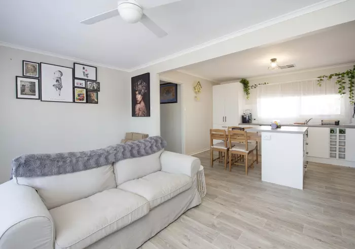 Inside, the layout is practical and inviting, featuring and an open plan living, modern kitchen with island bench and a meals area that creates a welcoming family space. The three bedrooms have built-ins while the upgraded bathroom is complete with a large shower alcove and a separate toilet for everyday convenience. Year-round comfort is taken care of with ducted heating and cooling throughout.